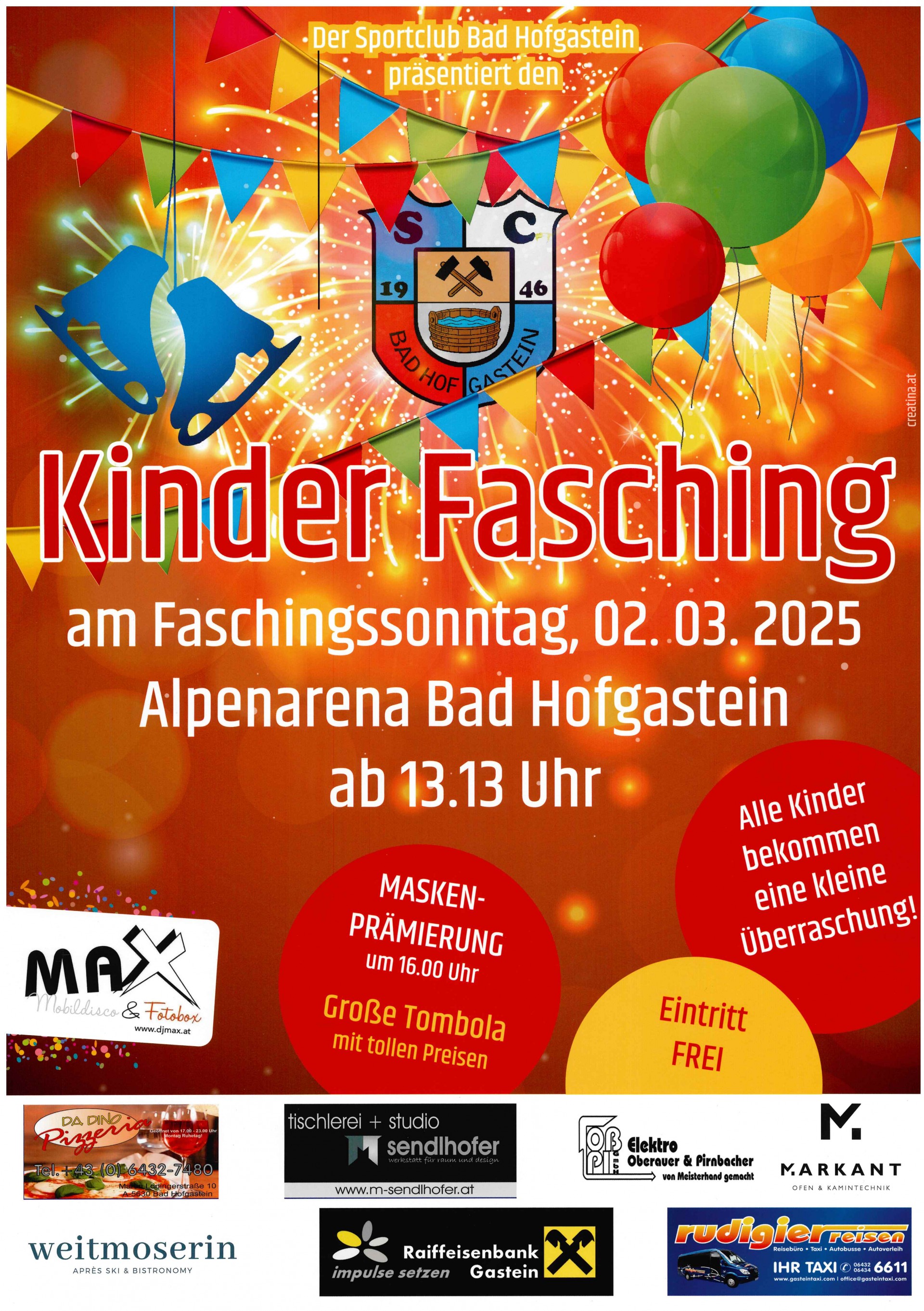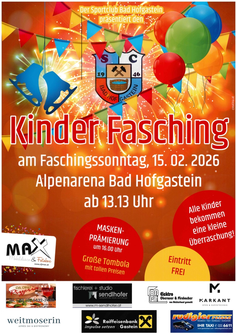Ein lustiges Kinderfaschingsfest beim Eislaufplatz in der Alpenarena, organisiert vom Sportclub Bad Hofgastein.