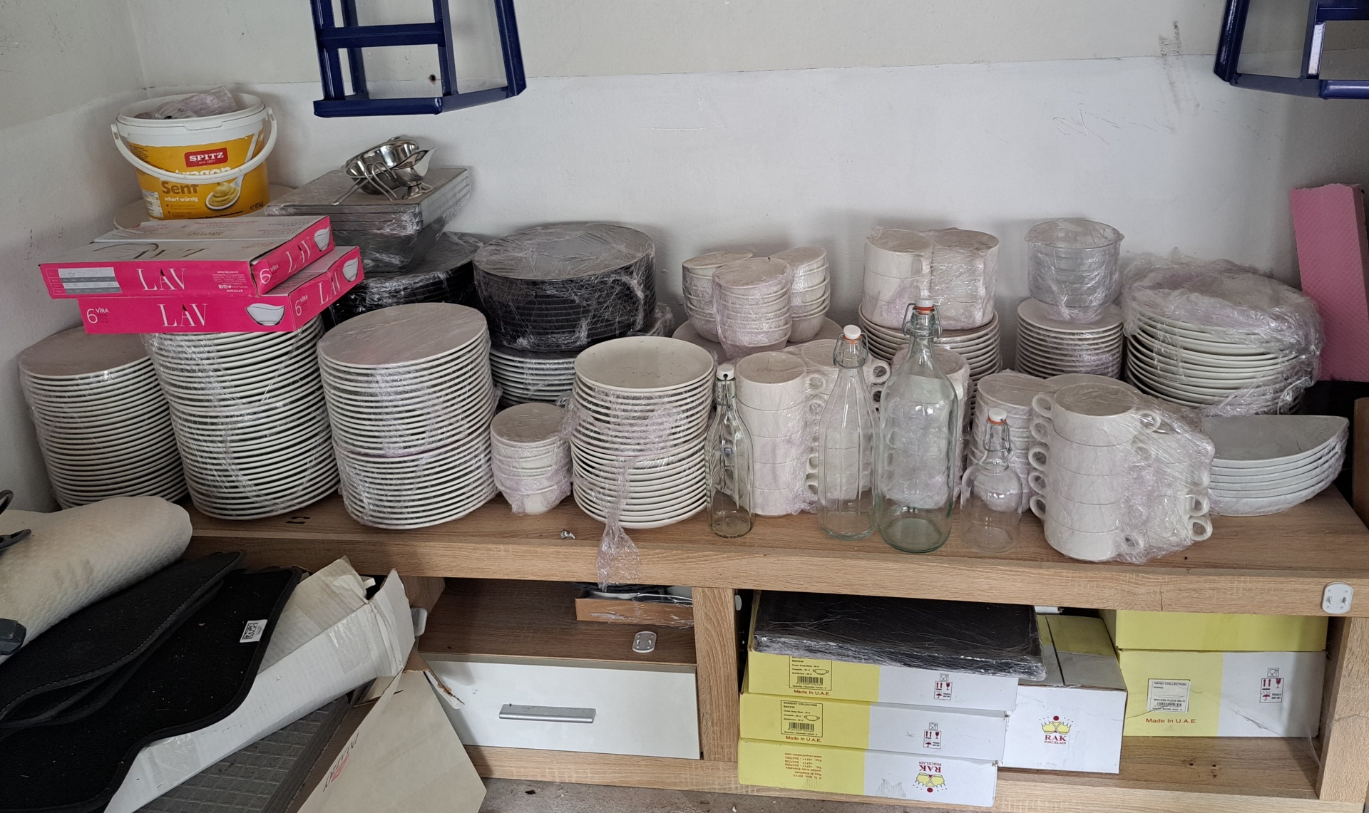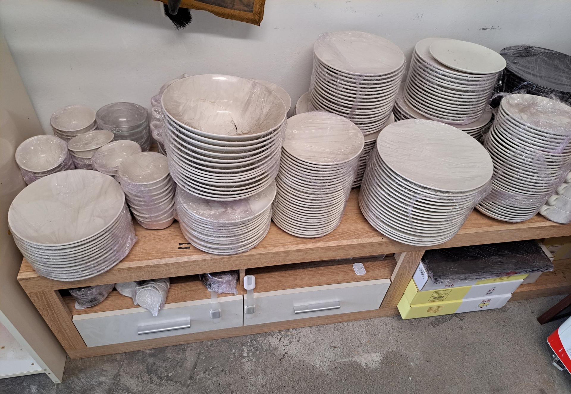 Verkaufe Gastro -Teller, -Tassen, -Schüsseln, -Servierplatten usw. Sie befinden sich in einem sehr guter Zustand. Viele sind noch originalverpackt, nie benutzt. Marke RAK Porcelain steht für Qualität. Es sind zirka 500 Stück, die ich lieber zusammen oder pro Sorte verkaufen möchte. Preis : 3000 euro