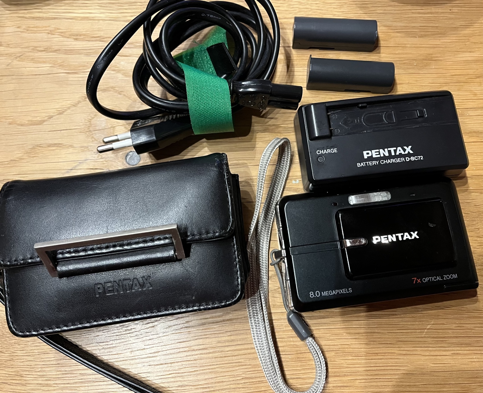 Fotoapparat mit Original Ledertasche, 2Akkus, Ladekabel, Ladegerät