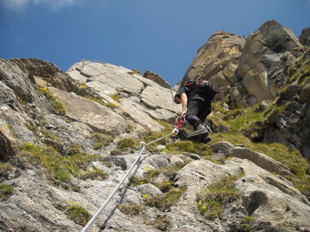 Für Anfänger ist die Begleitung eines Bergführers empfohlen. Für alle die selbständig den Klettersteig begehen wollen, gibt es ein Klettersteigset bei Sport Fleiss zum Ausleihen.