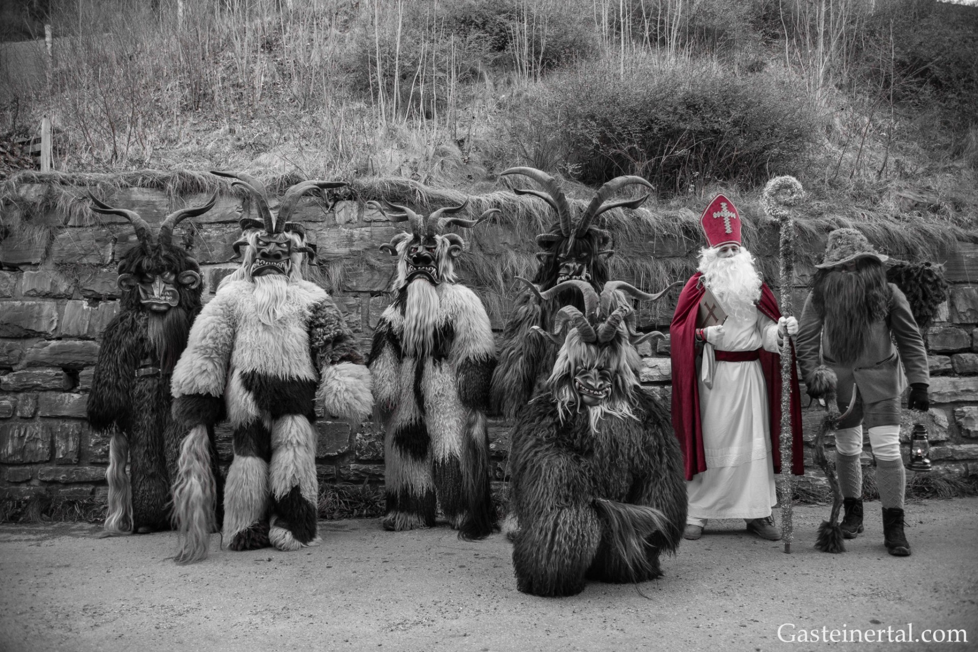 Unsere Pass ist durch einen grünen Nikolaus gekennzeichnet und besucht die Hofgasteiner Bewohner von Haus zu Haus.
