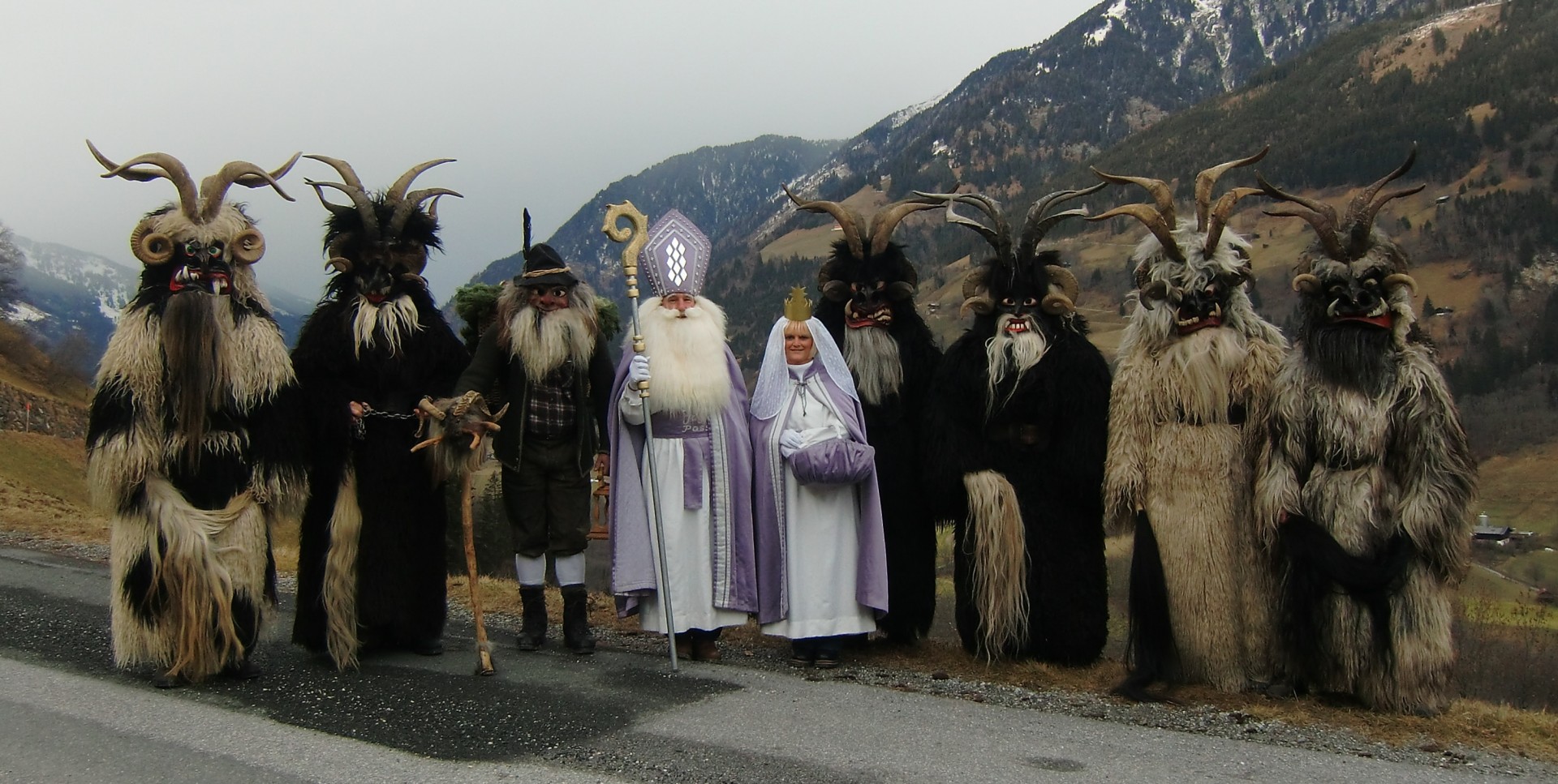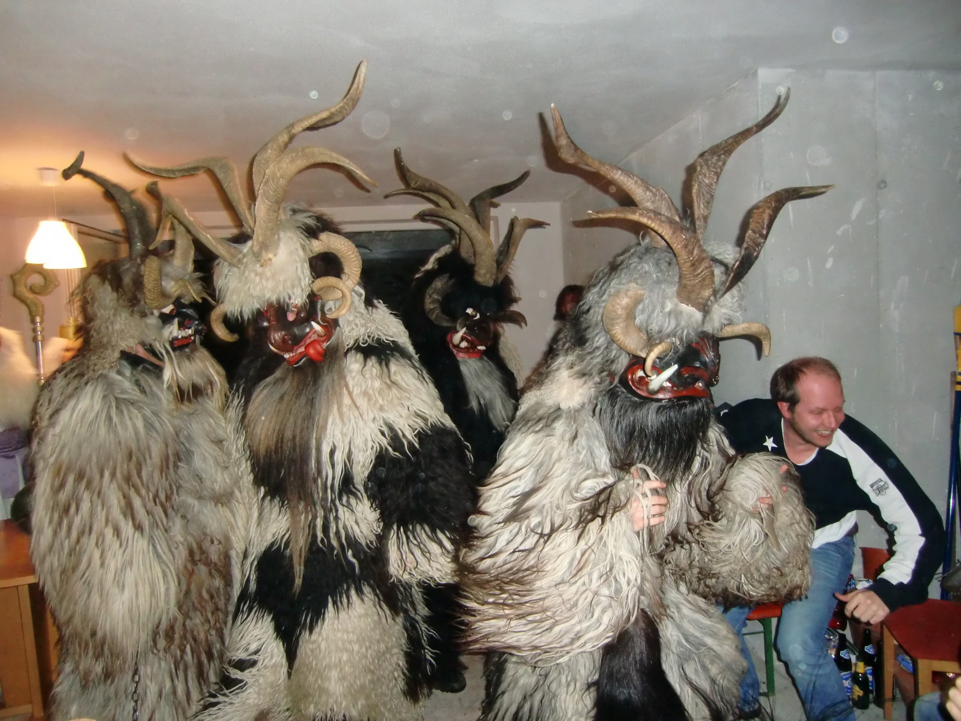 Die Krampusse der Jaga Pass gehen seit dem Gründungsjahr 1947 ausschließlich mit Schafmäntel. Alle Köpfe werden von Wallner Heinz sen. (Jaga Heinz) geschnitzt.
