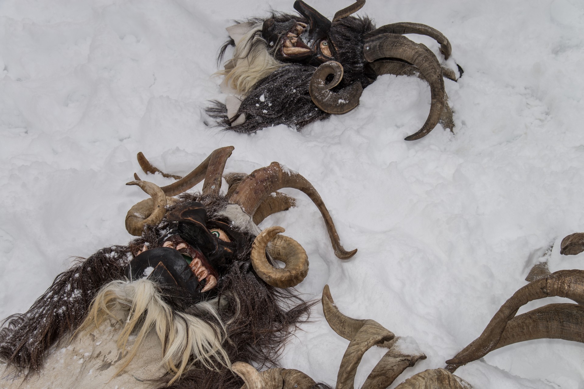 Die Loarvn sind allesamt aus einer Hand - Sigi Nussbichler ist der Schnitzer der Pass und musste schon das ein oder andere Missgeschick der Krampusse ausmerzen :). Sigi's Kreativität und Können ist noch vielfältiger. Er kreierte auch das Nikolausbuch und den Nikolausstab. Seine Unterstützung bei der Hörnerbeschaffung war für die Pass ebenso unerlässlich wie beim Auspolstern der Köpfe.