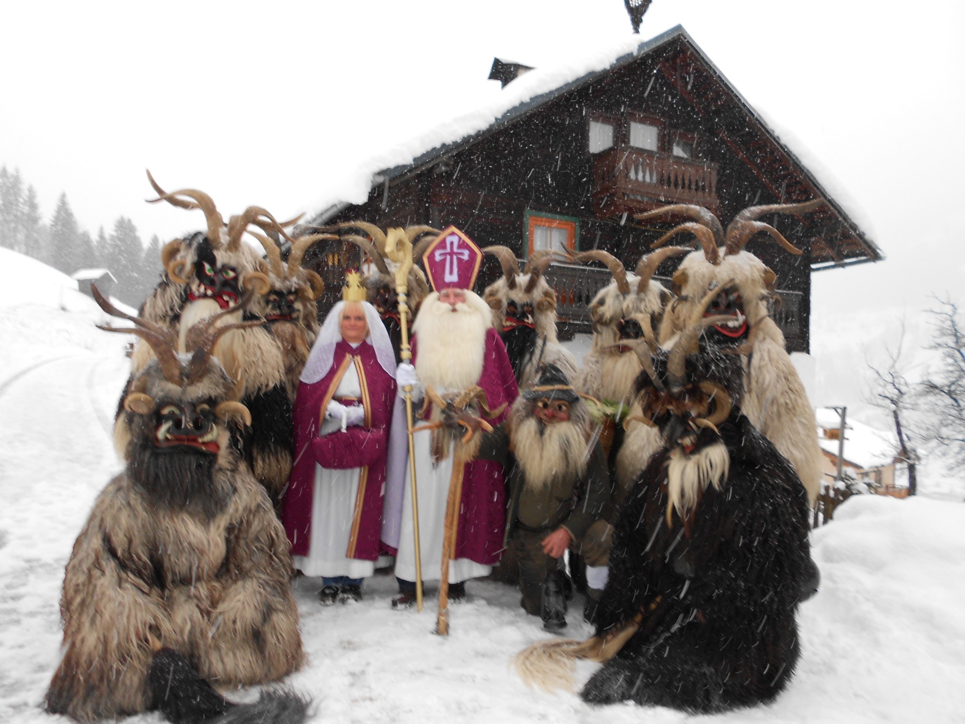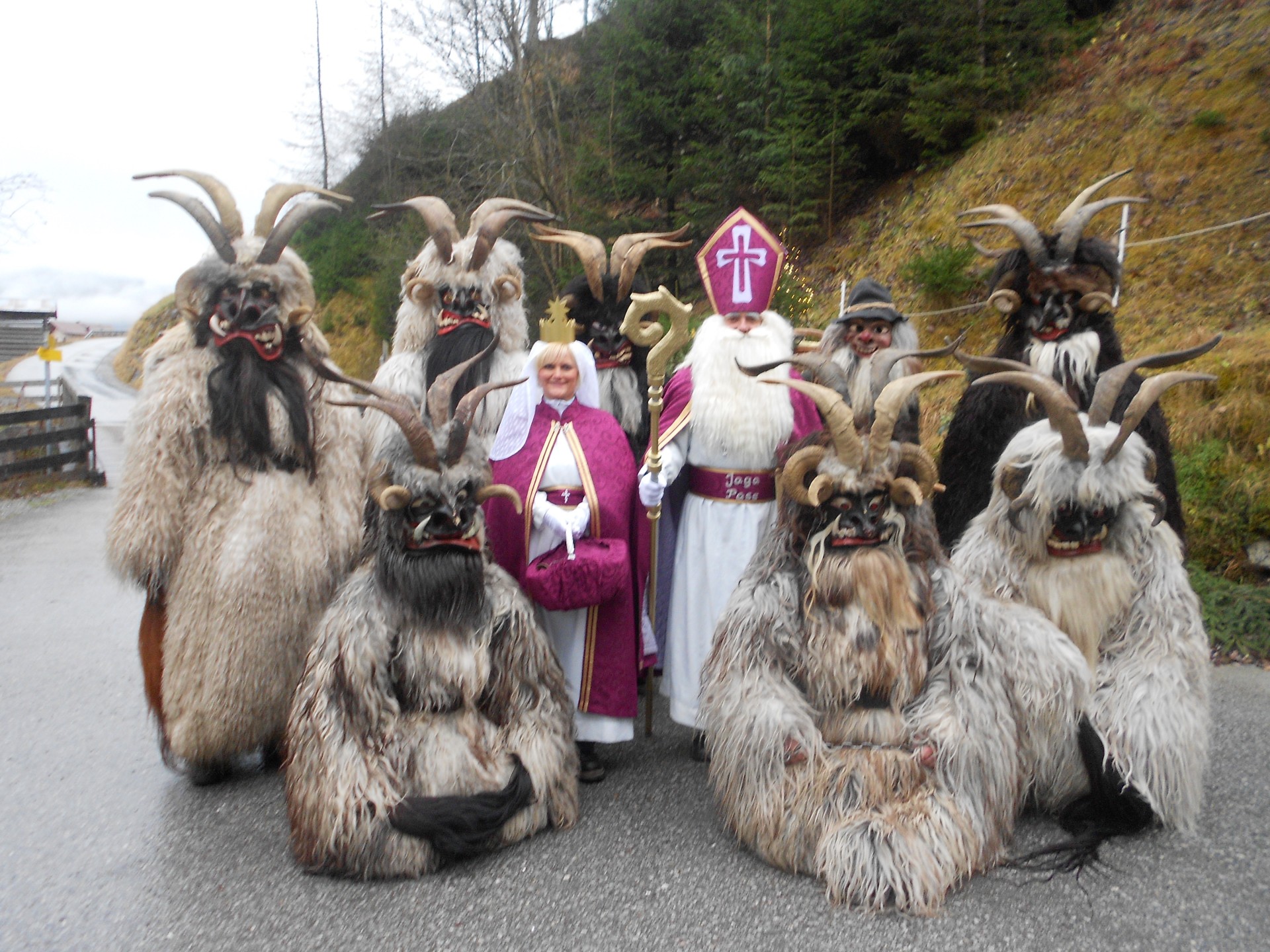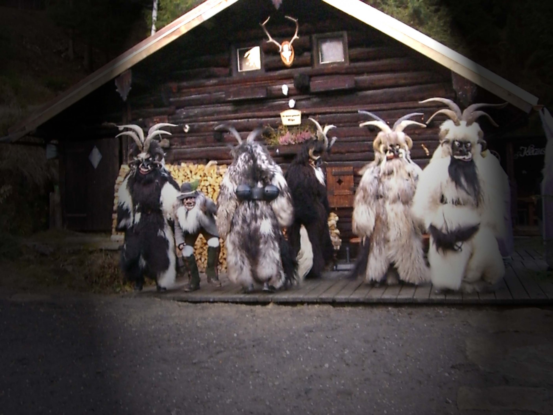 Die Krampusse der Jaga Pass gehen seit dem Gründungsjahr 1947 ausschließlich mit Schafmäntel. Alle Köpfe werden von Wallner Heinz sen. (Jaga Heinz) geschnitzt.